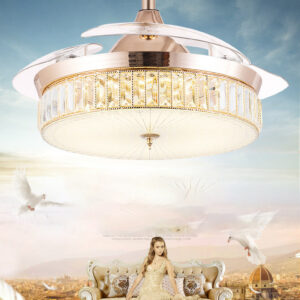 INVISIBLE CEILING FAN CHANDELIER CRYSTAL AND REMOTE CONTROL 4 RETRACTABLE ABS BLADES – WARM WHITE