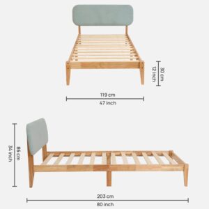 Clara Upholstered Single Size Bed In Natural Finish
