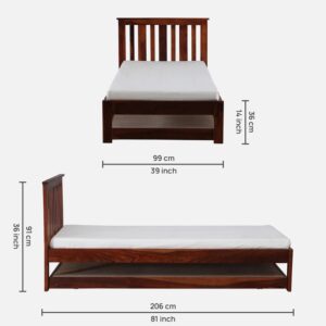 Freya Solid Wood Single Bed with Trundle in Provincial Teak Finish