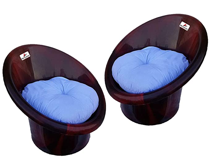 Brand: ANJWAR; Style: Modern; Material: Plastic; Construction: Sturdy & Durable;Dimensions : Dia. 24 inch, each chair weight: 3 kg, package contains: set of 2 tub chair with cushion