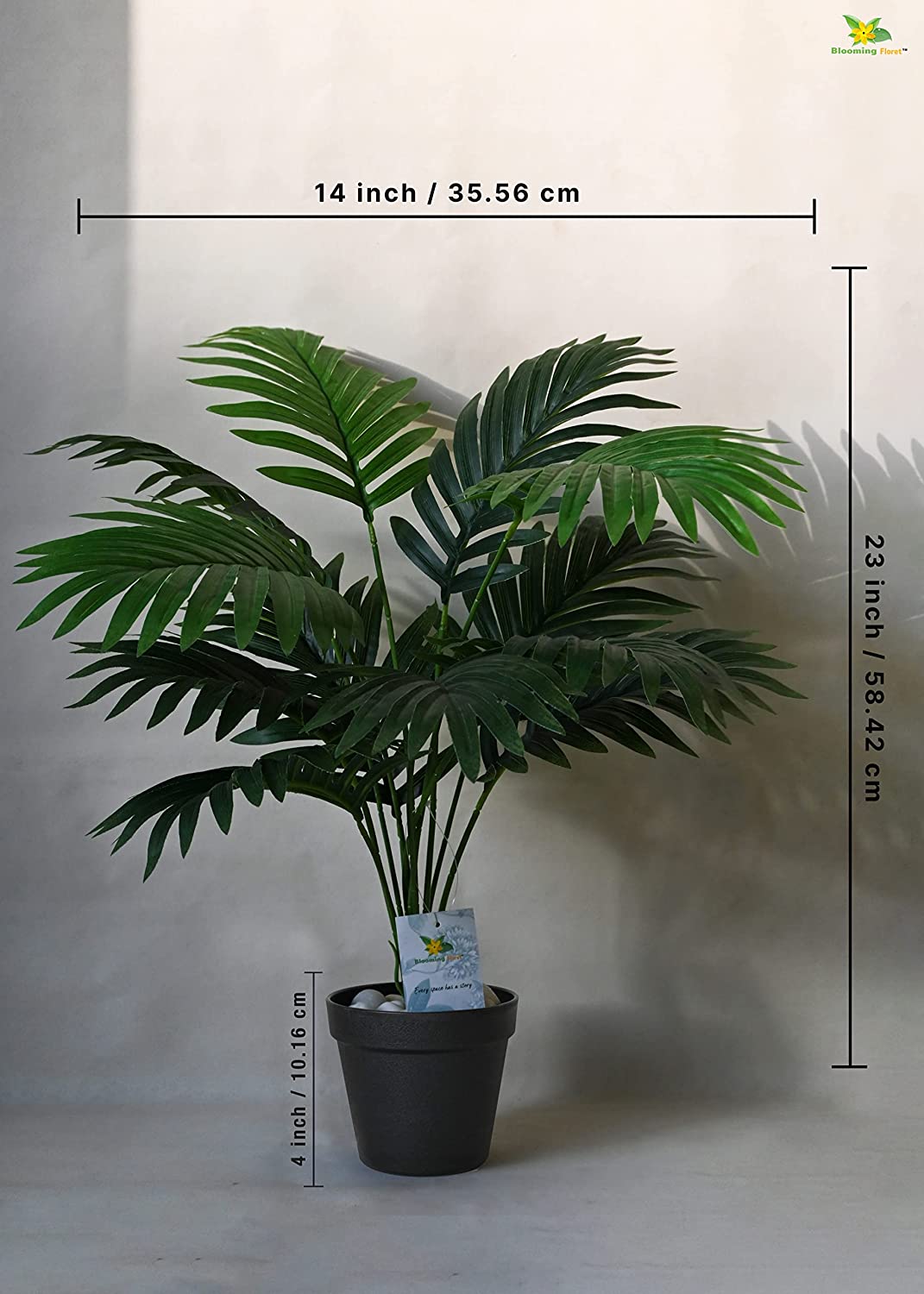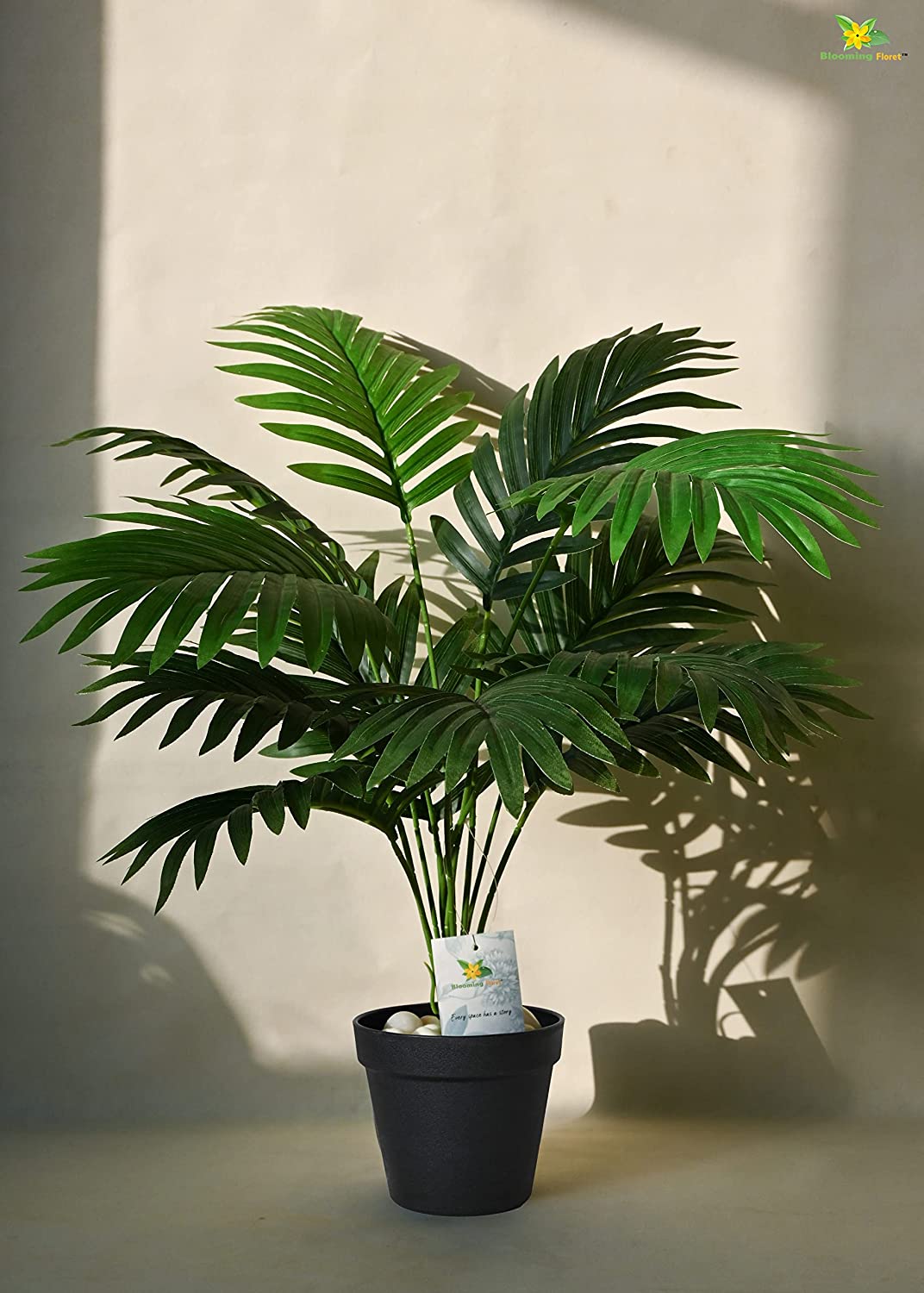 What’s in the Box : Blooming Floret Artificial Areca Palm containing the 12 leaves a stem along with a plastic pot. The leaves, stem & the pot will be separated, you just have to fix the leaves to the stem and then fit the stem into the pot with some artificial soil or with some beautiful pebbles & stones in order to hold the plant’s stem steady inside the pot. You can also place it in a planter of your own choice to match it up with the interiors.