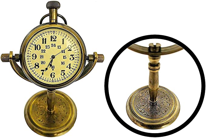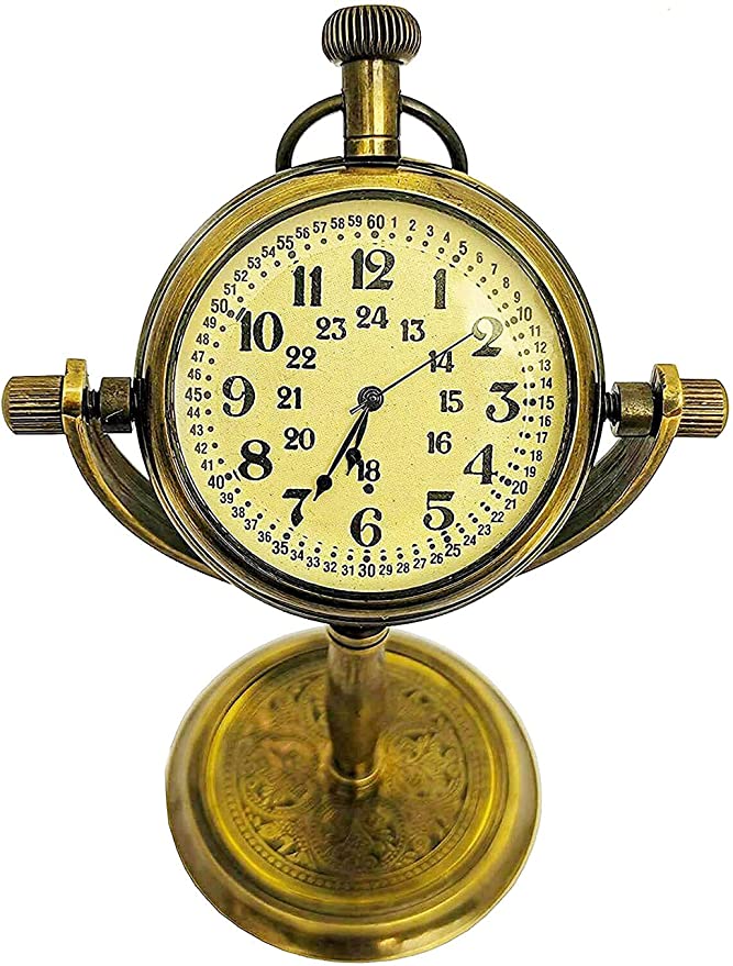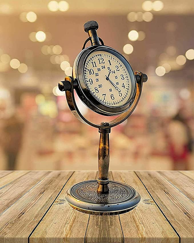 nBrand Unique NauticalnColour Antique BrownnStyle AntiquenSpecial Feature Antique, Table Top Clock, HandmadenPower Source Battery PowerednShape RoundnMaterial BrassnFrame Material Wood, BrassnMounting Type TabletopnAlarm Clock No