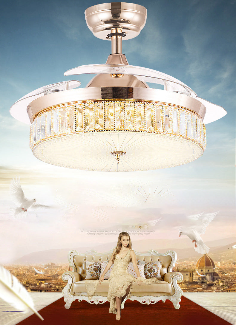 【Color and Speed】The chandelier ceiling fan includes 3 Colors Light, White Light/Neutral Light/Warm Light, It can be changed to create different atmosphere by remote control. high brightness, low power consumption and long service life.The fan speed can be adjusted by a High-mid-low Switch.n【Shabby Chic Retractable Ceiling Fan Innovative Design 】Retractable Ceiling Fans and LED Chandelier 2 In,It Is Very Cost-effective.The ABS blades will stretch out and put inside automatically when turn on and off. timer setting of 1h, 2h, 4h, and 8h is available with remote control.n【Ceiling Fan Dimensions】Ceiling Fan with Chandelier Using the Short Down Rod, Measures 16 From The Ceiling To The Bottom of The Fan. This Modern Ceiling Fan with Lights Diameter Is 36 When Fan Extended, 16.9When Fan Blade Retract Back. Two Down Rods Are Included, One Is 4.7 Inch, Another One Is 9.8 Inch, You Can Choose One To Install.n【Retractable Blade Design】 With 4 retractable acrylic ceiling fan blades,blades will stretch out and put inside automatically when turn on and of,fRetractable acrylic ceiling fan make house looks more beautiful,the fan not only make you cool in summer,and provide decent decoration.n【Silent Motor】Smart invisible ceiling fan lights with remote control glass lampshade and 4 acrylic brown blades, 3-speed switch, silent motor, no noise, don’t effect the quality of sleep,when summer comes provide your cool.