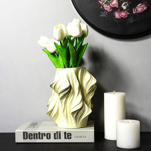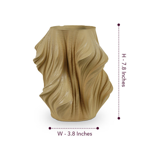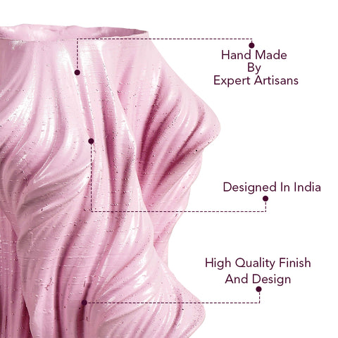 This artistic flower vase is made of resin. It is available in 4 colors, Made in India by local craftsmen.nEach vase measures 7.8 inches in height and 3.8 inches at the bottom- the flat bottom gives it a steady grip and doesn’t topple over when flowers are placed.nThe 3-D texture makes it look appealing and classy. It is available in 4 shades- white, pink, yellow, and cream. This table planter can blend beautifully with any home decor item.nThis table vase is ideal to gift for special occasions like birthdays, anniversaries, weddings, housewarmings, mother’s day, Diwali, Christmas, eid, and any other festivity and event.nEvery vase is packed in a triple layer of bubble wrap and sent safely in a cardboard box. Everything is done manually and by Indian craftsmen.